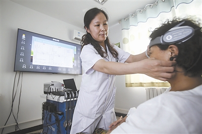 唐山开滦精神卫生中心,医生对地震幸存者进行心理干预。目前,已有400多名患者在此进行治疗。