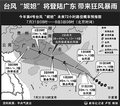 据新华社广州7月31日电 (记者田建川)广东省防总通报,台风“妮妲”或正面袭击广东“最要害”的珠三角地区,为广东带来“风、雨、浪、潮、洪”五碰头的最不利情况,防灾形势极其严峻。