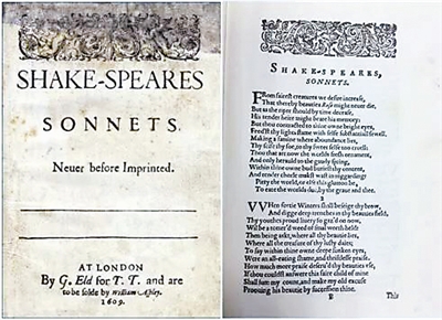 1609年首版于1926年的重印本《莎士比亚十四行诗》