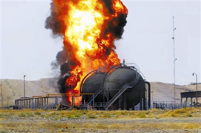 这是7月31日在伊拉克基尔库克省拜哈桑拍摄的被袭油气田设施。