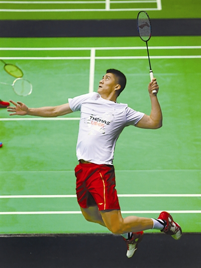 7月30日,中国羽毛球队队员傅海峰在训练中。