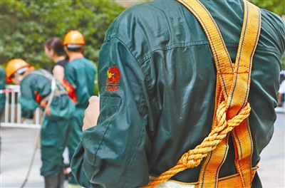 8月2日,在上海闸北区清洗楼宇的“蜘蛛人”汗流浃背。
