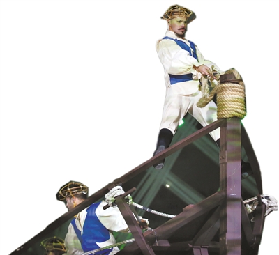 高楼大厦林立,都市的轮廓渐渐变得清晰,“杜蒙特”驾驶着他的“14BIS”飞行在马拉卡纳上空,之后越飞越远,穿过多个里约地标性景观:高耸的基督山、迷人的科帕卡巴纳海滩……通过全息投影技术,这些美景近距离地呈现在全世界观众的面前。