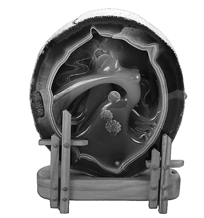 玛瑙,在火山岩裂隙或空洞中一层层、一圈圈沉淀而成,具有多种天然色彩和条带花纹,有“千种玛瑙万种玉”之说,是雕刻艺术品的理想材料。阜新玛瑙采掘及加工历史久远,距今7600多年的阜新查海古人类遗址因出土“世界第一玉”和“华夏第一龙”被国内外考古界誉为“玉·龙故乡、文明发端”。