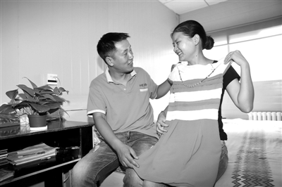 8月9日,天津滨海新区文化中心项目工人生活区的探亲间里,施工人员周敏和妻子难得一聚,周敏知道七夕节妻子要来,提前准备了件新衣服给妻子。