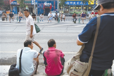 8月11日早上,马路劳务市场不断增加的人流已经挤满了马路。