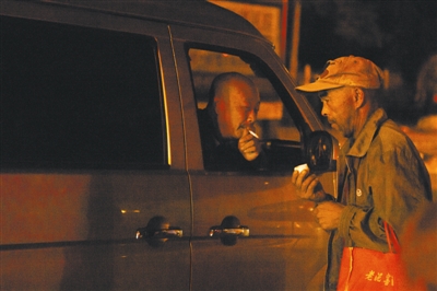 2015年9月12日凌晨5时左右,一位三天已经没有找到工作的老年农民工正在跟雇主讨价。