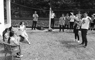 8月14日,铁路文艺工作者来到位于四川省乐山市金口河附近的成昆铁路K243女子防洪看守点,为在这里值守的防洪女工送上精彩的演出和祝福。