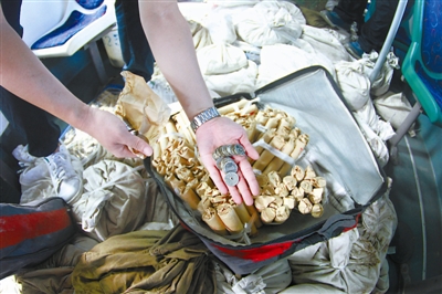 8月16日,大连公交集团把10年来积累下来的游戏币、作废外币、假币等67万余枚、近5吨重的公交假币进行集中销毁,这些公交假币经过挤压封装后,进入炼钢厂进行融化销毁。图为工作人员展示种类繁多的公交假币。王华 摄/东方IC