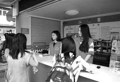 8月16日,党员志愿者在“党员帮你亭”为居民提供咨询服务。