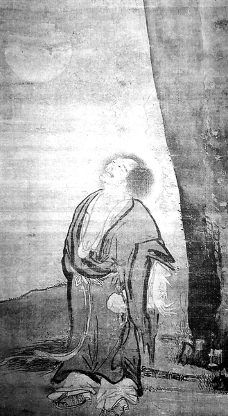 那么,画家笔下的拾得长相究竟怎样?左图为《拾得图》,为明代画家张路所作。图中的拾得身后倒着一扫帚,腰间挂着酒葫芦,双手握在背后,仰首望着星月,颇有种自在逍遥而远离尘世的感觉。