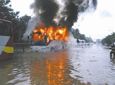 近日,南京两辆电动大巴在水中起火,疑因电瓶进水引发火灾。