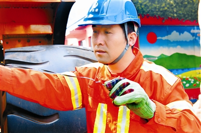 把矿石从堆场里装卸到大货车上,装载机是最主要的“工具”。郭凯的工作看似简单,却硬是把作业的每一个环节做到了极致。