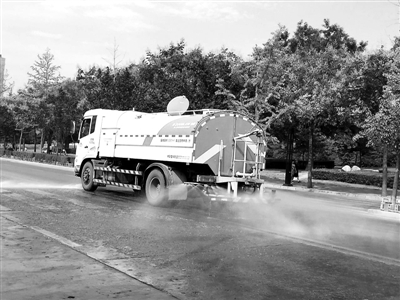 一趟水洒完得半个多小时,收车检查完再加水又得半个多小时。稍事休息,第二趟洒水作业又开始了。