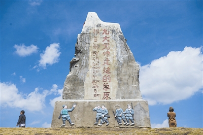 8月21日,四川省若尔盖“九大元帅走过的草原”纪念碑下,游客们慕名而来。
