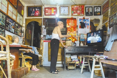 贵州省习水县土城镇红旗街,红军长征四渡赤水时期的临时驻地。88岁的刘大群和老伴坐在临街的小屋里,神情紧张地看着电视机里中国女排对阵巴西队的比赛。刘大群的家曾是红军长征时的驻地之一。这几年,随着生活条件的改善,子女们都在城里安家立业,舍不得祖宅的老两口却和这间屋子一起留了下来,逐渐成了这条红旗街上的一处景致。在贴满照片和荣誉证书的老屋里,刘大群和老伴不厌其烦地向每一位参观者讲述他们一家人与红军的故事,日复一日,年复一年。