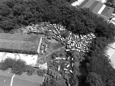 8月26日,在南京江宁谷里的小山里停放着将近400辆破旧的汽车。尽管车辆很破旧,但是车的牌照都是新的。据了解,这些车牌都是从二手车市场收购来的,坐等南京限牌,然后再高价把这些汽车号牌转卖出去。不过,南京市官方已明确回应限牌谣言。周会峰摄 东方IC