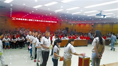 公司专职工会干部王立此次亦当选为工会委员。他介绍称,近三个月来,为了筹备该会议,开发区总工会一直和公司工会做沟通培训。按照《天津开发区基层工会‘三公开三公示差额竞选制度’指引》的要求,公司工会非常严格地在基层单位做了会员代表、工会(经审)委员会候选人、工会会员代表大会选举程序的公开公示。