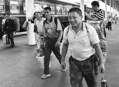 8月28日,乘坐K4733次列车的棉农工在乌鲁木齐南站出站。