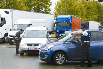 8月29日,在比利时首都布鲁塞尔,警察在爆炸地点附近封锁道路。