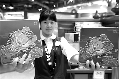 近日,有顾客在上海迪士尼小镇迪士尼世界商店等店铺看到货柜上摆放着花好月圆中秋系列月饼,这些月饼包装精美且带有迪斯尼卡通元素,店员还邀请顾客免费品尝。视觉中国 供图