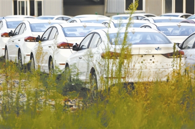 8月27日,湖北省襄阳市,某汽车城4S店将新车停放在荒地上,崭新的车被杂草包围,许多车旁的杂草已经有一米高。