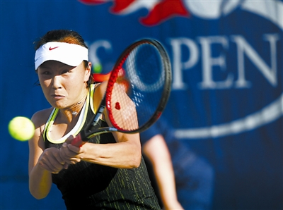 8月30日,在2016美国网球公开赛女子单打首轮比赛中,中国选手彭帅以1比2不敌美国选手列普琴科,无缘下一轮。图为彭帅在比赛中回球。新华社记者 秦朗 摄