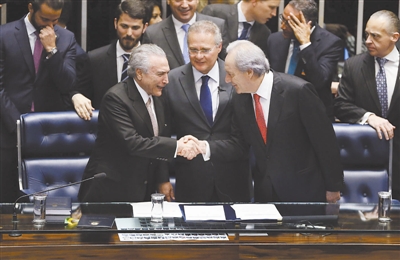 5月12日,巴西国会参议院以55票对22票的投票结果支持对罗塞夫总统进行审判。罗塞夫被强制停职最长180天,副总统特梅尔出任代总统。