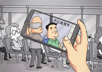 腿伤青年王小米,乘坐公交去求医,七旬老翁身边走,无奈病痛难起立。此刻突现偷拍者,断章取义发信息。手机相机二合一,搭载网络如添翼,发图发文发吐槽,处处都有自媒体。虚假资讯乱视听,急需监管与自律。