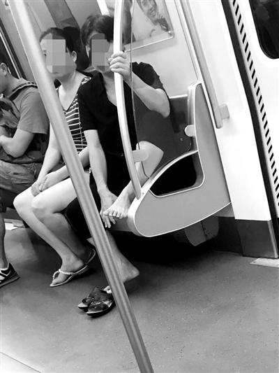 地铁空间原本就不宽敞,但在经常会遇到一些乘客,为了自己舒服,把二郎腿翘得老高,旁边站着的乘客往往会被蹭一身灰。