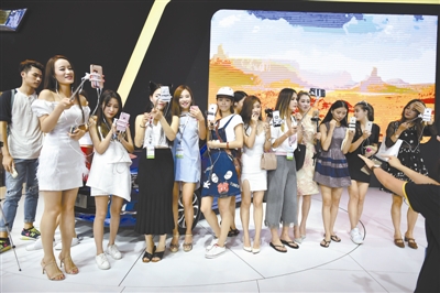 在成都车展上,网红集体现身举自拍杆直播吸引不少参观者的眼球,很多的展台前方变成了一堆网红主播的直播间,人气主播搭着专业编辑,为网友奉献了亦庄亦谐的车展视频直播。