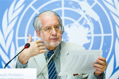 9月6日,叙利亚问题独立国际调查委员会主席皮涅罗在瑞士日内瓦出席记者会。该委员会6日在日内瓦发布最新报告说,在今年2月短暂的停火之后,叙利亚人在愈演愈烈的暴力冲突中正遭受前所未有的苦难。新华社记者 徐金泉 摄