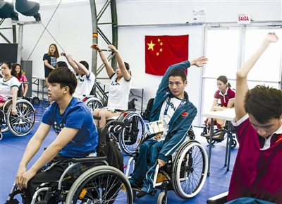 里约残奥会游泳比赛将于9月8日展开,中国游泳队在比赛场馆进行训练。