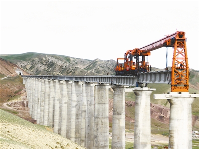——与此同时,奎北铁路也在施工中刷新了两项全国纪录:日铺轨10.704公里,一举刷新了早在1998年南疆铁路创造的日铺轨10.115公里的全国纪录;日架32米梁11孔,刷新了全国单线架梁最高纪录;