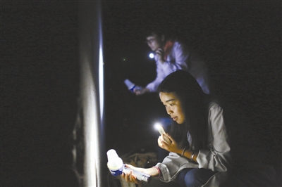 8月4日,昆明,疾控人员扯开25米长的电源线在目标区域布置诱蚊灯。
