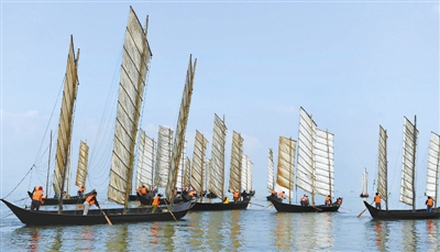 9月13日,渔民划着帆船在昆明滇池上准备捕鱼。