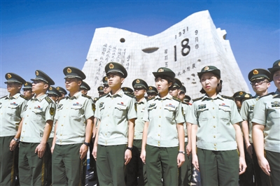 当日,武警辽宁边防总队组织部分驻沈官兵开展以“勿忘历史 奋发图强”为主题的爱国主义教育。