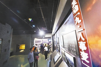 9月17日,武警辽宁边防总队官兵在辽宁省沈阳“九一八”历史博物馆参观。
