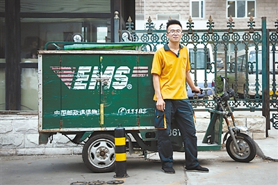 快递小哥陈伟东,25岁,吉林通化人,做快递一年多了,每月收入5000元左右。