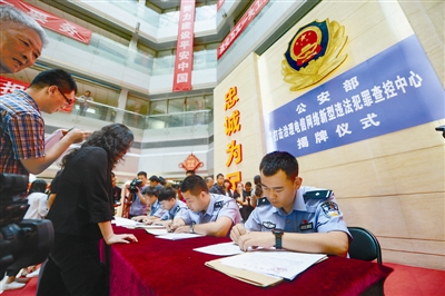 9月20日,中国北京,公安部打击治理电信网络新型违法犯罪查控中心在北京市公安局揭牌,同时,公安部、银监会、北京市公安局联合颁布《电信网络新型违法犯罪案件冻结资金返还若干规定》。现场,警方为12名被骗事主返还700余万元冻结资金。