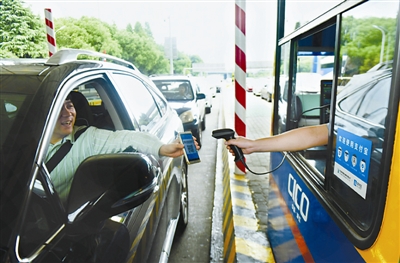 9月21日,沪杭甬高速公路的杭州彭埠收费站,驾驶员使用支付宝缴纳高速公路通行费。据高速收费站工作人员统计,支付宝缴费速度与传统现金支付相比,每辆车至少能减少5秒的通过时间,相应过站时间节约25%。 龙巍 摄/东方IC