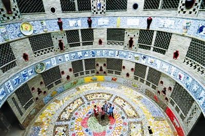 余二妹12岁便在舅舅的陶瓷作坊里学艺,后进入瓷厂工作,积累了丰富的制瓷手艺。改革开放后,她自己经营柴窑和陶瓷厂,还经常去大城市跑销售。直到5年前,当余二妹在外地看到一个“瓷房子”的景点时,她暗自许愿,要建一个属于瓷都景德镇的“瓷宫”。5年间,余二妹用收集的6万多件瓷器、80吨瓷料,建造了一座她梦想中的“瓷宫”。新华社记者 万象 摄
