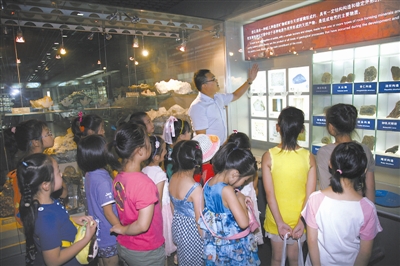小朋友参观岩矿标本。 本报记者 杜鑫 摄