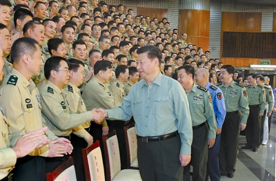 习近平强调,要在提升战略遏制能力上实现新突破,贯彻新形势下军事战略方针和军队建设发展“十三五”规划纲要总体部署,制定火箭军发展战略和建设规划计划,把火箭军力量结构和部队编成搞得更加科学,进一步解放和发展战斗力。要在提高备战实战化水平上实现新突破,锲而不舍、一丝不苟抓好实战化军事训练,深度融入全军联合作战指挥体系,保持常备不懈、随时能战的战备状态。要在加强战略运用上实现新突破,坚持抓建为战、以用促建,全面把握战略力量运用的特点和规律,确保发挥战略作用。