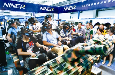 9月26日,参展人员在2016中国(青岛)国际海洋科技展览会上通过VR身临其境地感受海洋科技的神奇。