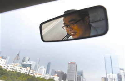 网约车司机付昌总是笑容满面,他熟悉广州的每一条街道,对这座城市充满感情。张伟 摄/视觉中国