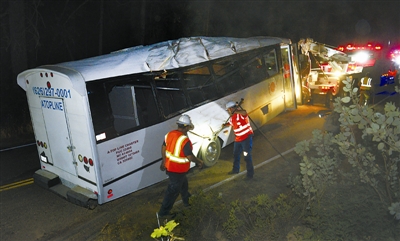 据媒体报道,一辆载有22名中国游客的旅游巴士24日在加利福尼亚州中部发生车祸,已导致11人受伤,一人死亡。