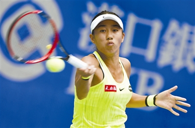 9月26日, 在2016年武汉网球公开赛女子单打首轮比赛中,中国选手张帅以2比1战胜同胞彭帅,晋级下一轮。图为张帅在比赛中回球。新华社记者 肖艺九 摄