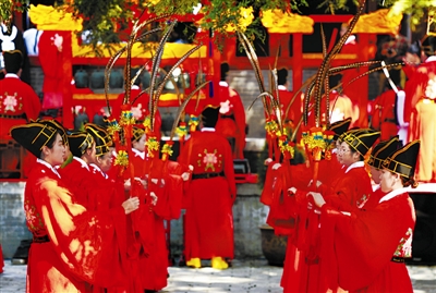 9月28日,在河北沧州文庙,传统礼仪文化爱好者进行祭孔展演。