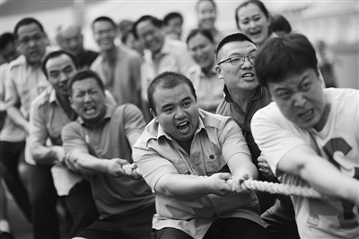 石家庄高新区供水排水公司经常组织职工开展文体活动,丰富职工业余文化生活,并通过活动培养职工间互相信任,互相配合,以此提升凝聚力。该公司开展的封闭式军训、管乐团、舞蹈队、书法比赛、厨艺比赛等,都体现了团队精神。图为在日前举行的2016年度职工运动会上,职工拔河比赛的场景。